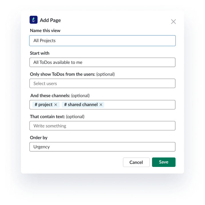 Another way to collect all the tasks from several projects in one place is to create a View. A view allows to sort the tasks that were assigned to or by certain team members or mentioned in specific channels.